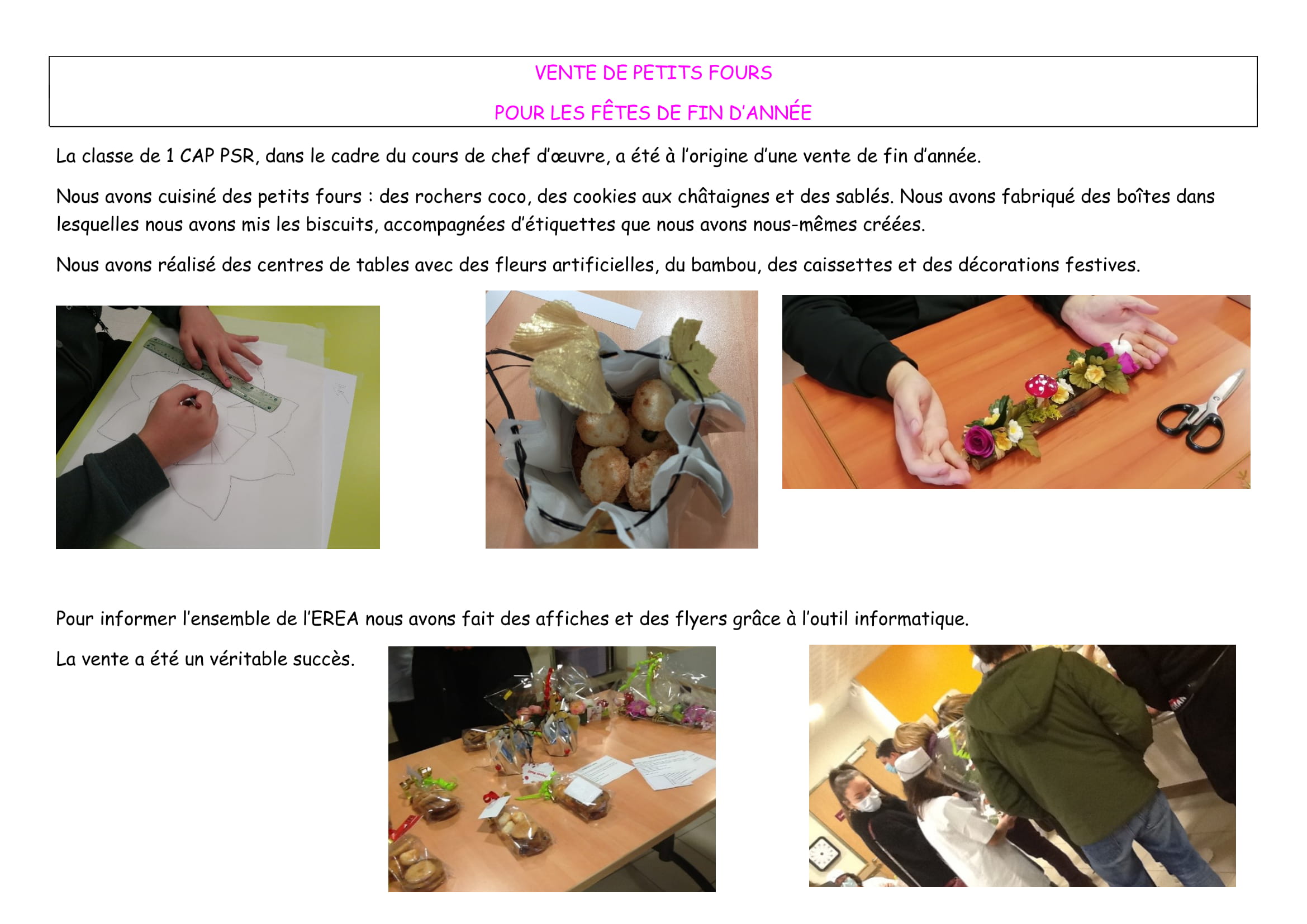 La classe de 1 CAP PSR, dans le cadre du cours de chef d’œuvre, a été à l’origine d’une vente de fin d’année.